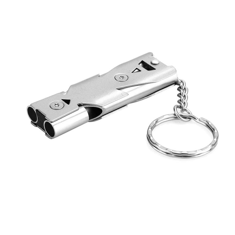 - Pack Size: 1 x Dual Tube Metal Whistle Key Ring