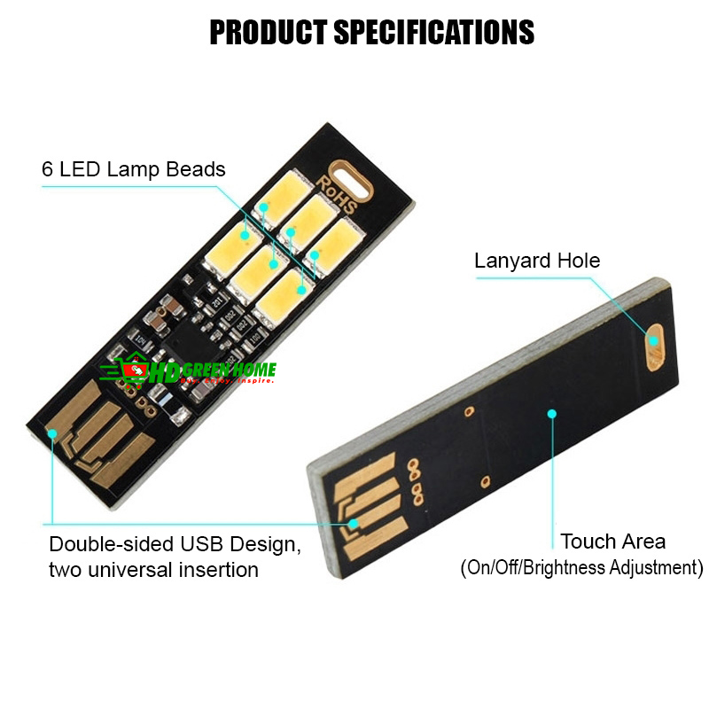 - Pack Size: 1 x Touch 5V USB 6LED Light
